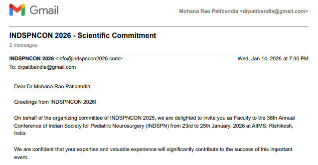 GUNTUR, ANDHRA PRADESH, INDIA, April 30, 2026 /EINPresswire.com/ -- Mohana Rao Patibandla, a leading neurosurgeon in Guntur and internationally trained specialist, is bringing cutting-edge pediatric neurosurgical innovations into active clinical practice following his faculty presentations at INDSPNCON 2026, held in January 2026 at All India Institute of Medical Sciences Rishikesh.— Dr. Mohana Rao Patibandla, Neurosurgeon & Founder, Dr. Rao’s Hospital